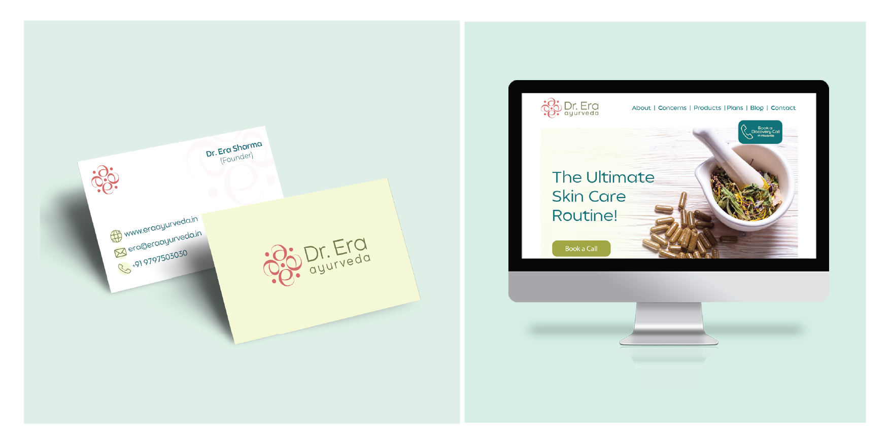The final brand identity reflects everything Dr. Era Ayurveda stands for clarity, authenticity, and trust backed by expertise.